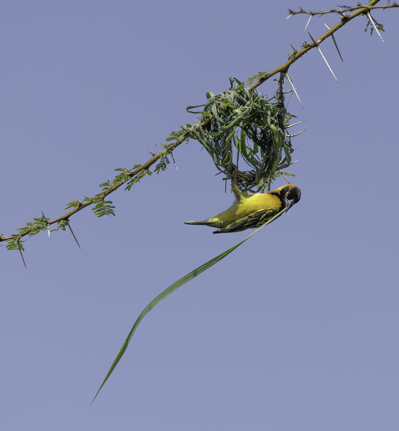 Vitelline masked weaver nest building