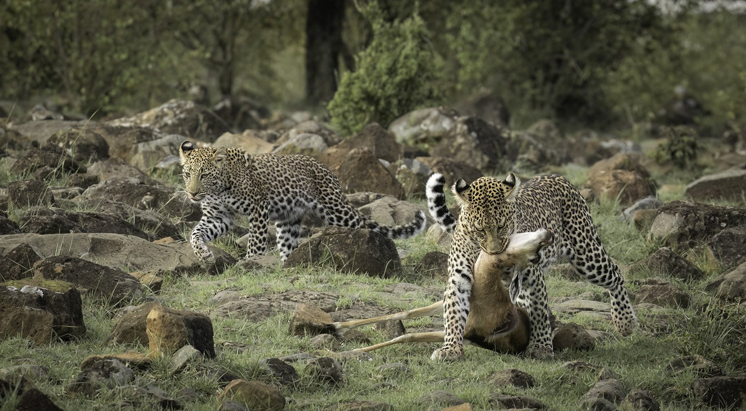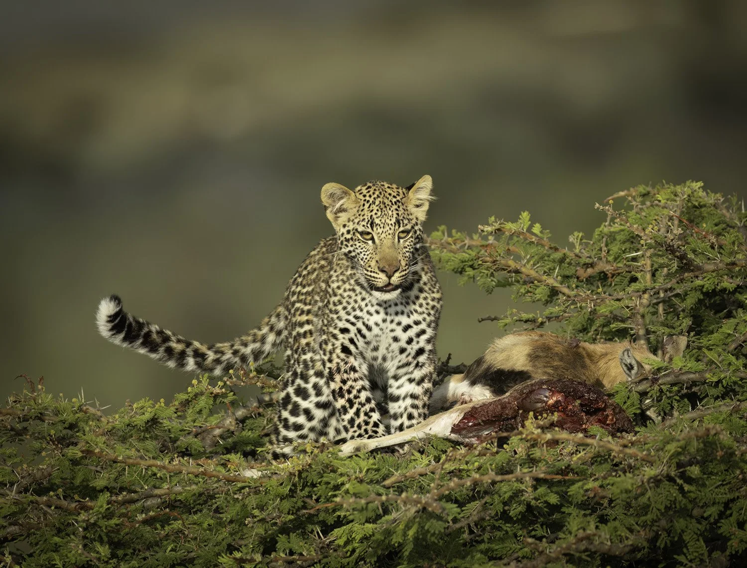 Leopard cub with Thompson’s gazelle kill