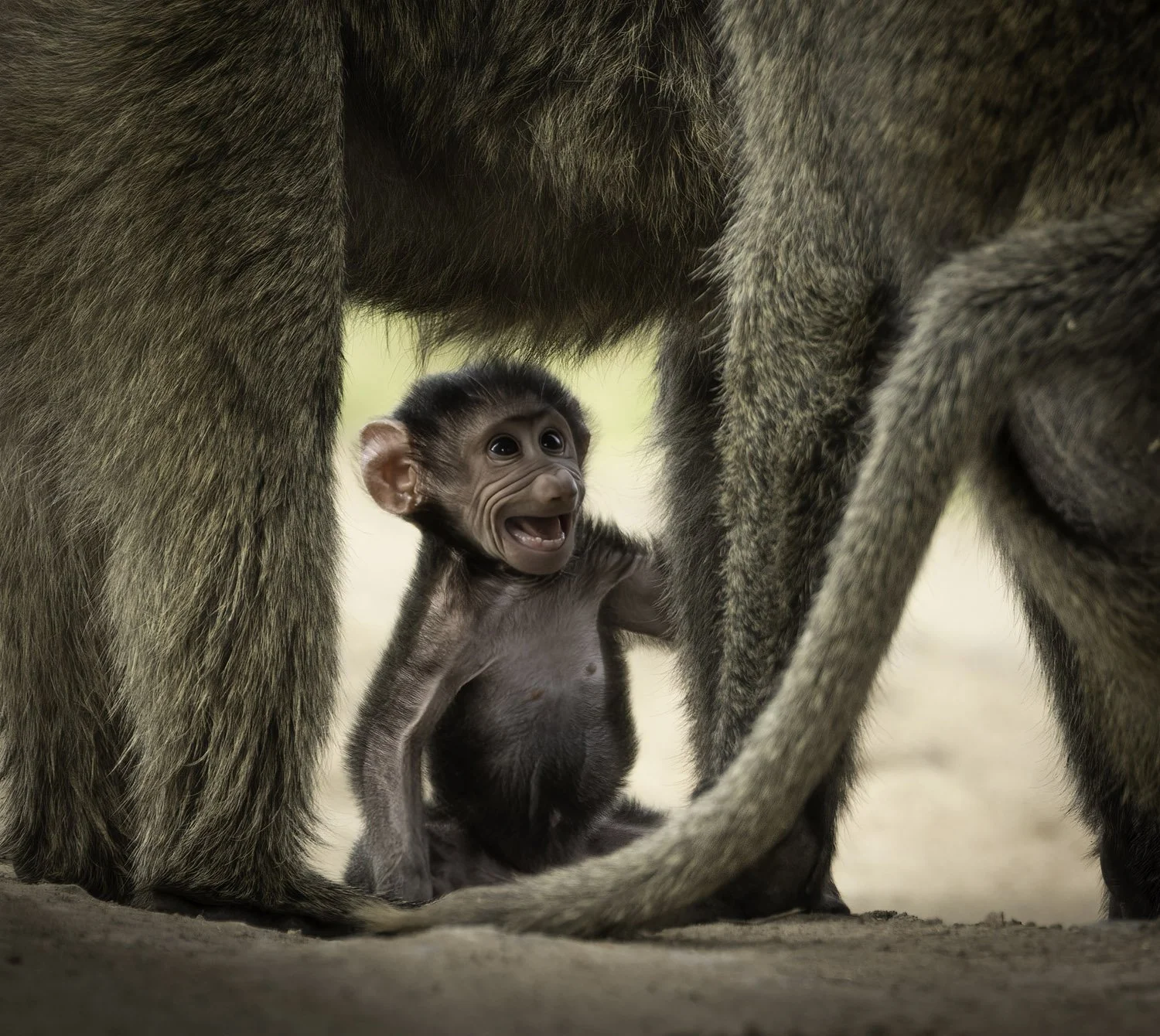 Startled baby chacma baboon